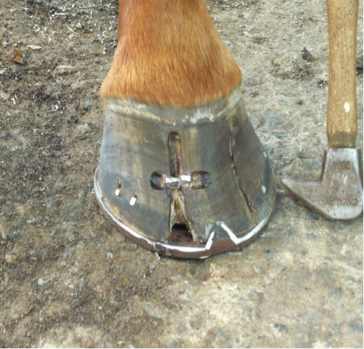 Corrective shoeing and a personally derived stapling method performed by Ben Owen of the “Old Farrier Shop”